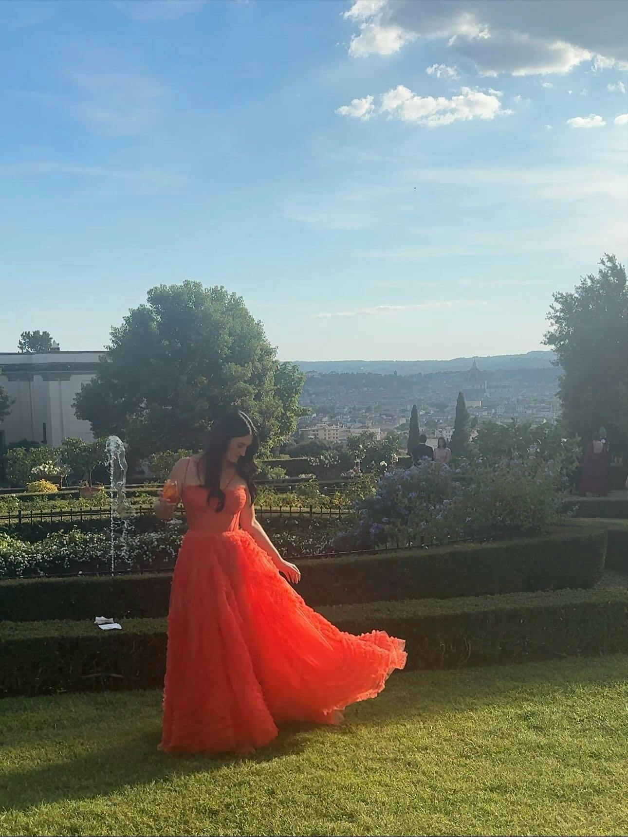 This dress was made for celebrations! The color popped so perfectly under the lights, and the flow of the skirt made every step feel graceful. I got so many compliments at my best friend’s wedding—definitely a moment to remember.